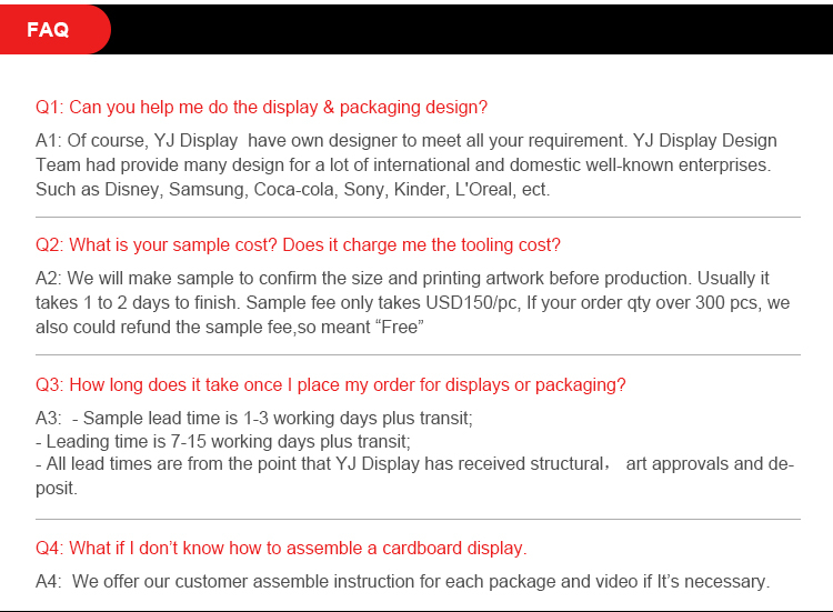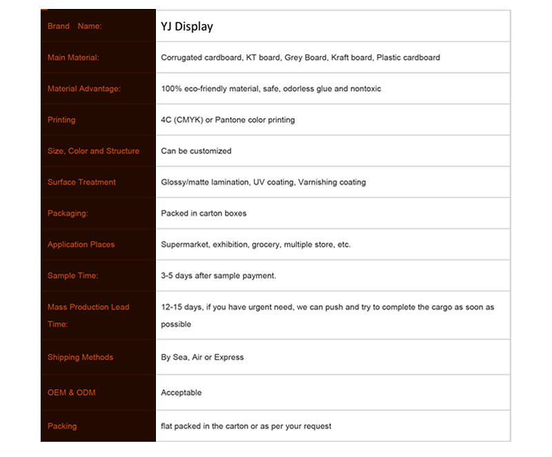 Remarks:All the displays are 100% recyclable and strong material,Ecofriendly and high-quality printing,easy assembled